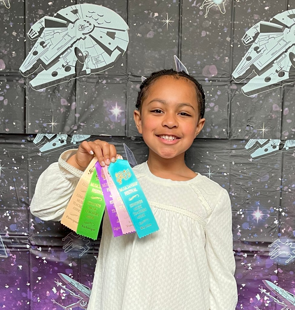 Some great photos from the EMTA Musicianship Festival that was held this past Saturday on May 4, 2024. The theme was “May the 4th be with you” plus other space related themes. Twenty teachers and 209 students were registered for this fun event. Festival events included: music performance opportunities, music literacy exams, musical composition submissions, and music projects (including arts and crafts, history, research paper, etc.). More results from the festival will be coming soon.