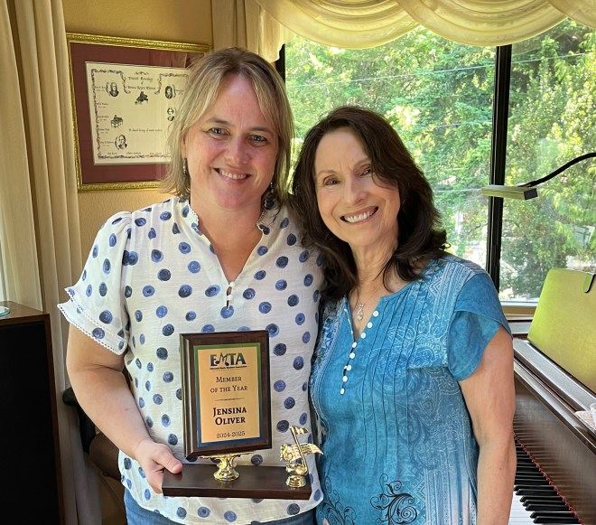 “Jensina has long been a friendly and highly valued member of our EMTA community. She has recently been helping organize our large Music Artistry Program, stepped into organize a panel presentation of expert teachers for our EMTA general meeting, worked hard to revamp our Excellence in Music Award program, all while teaching at Shoreline Community College, adjudicating various music events, and presenting at the MTNA National Association convention.”