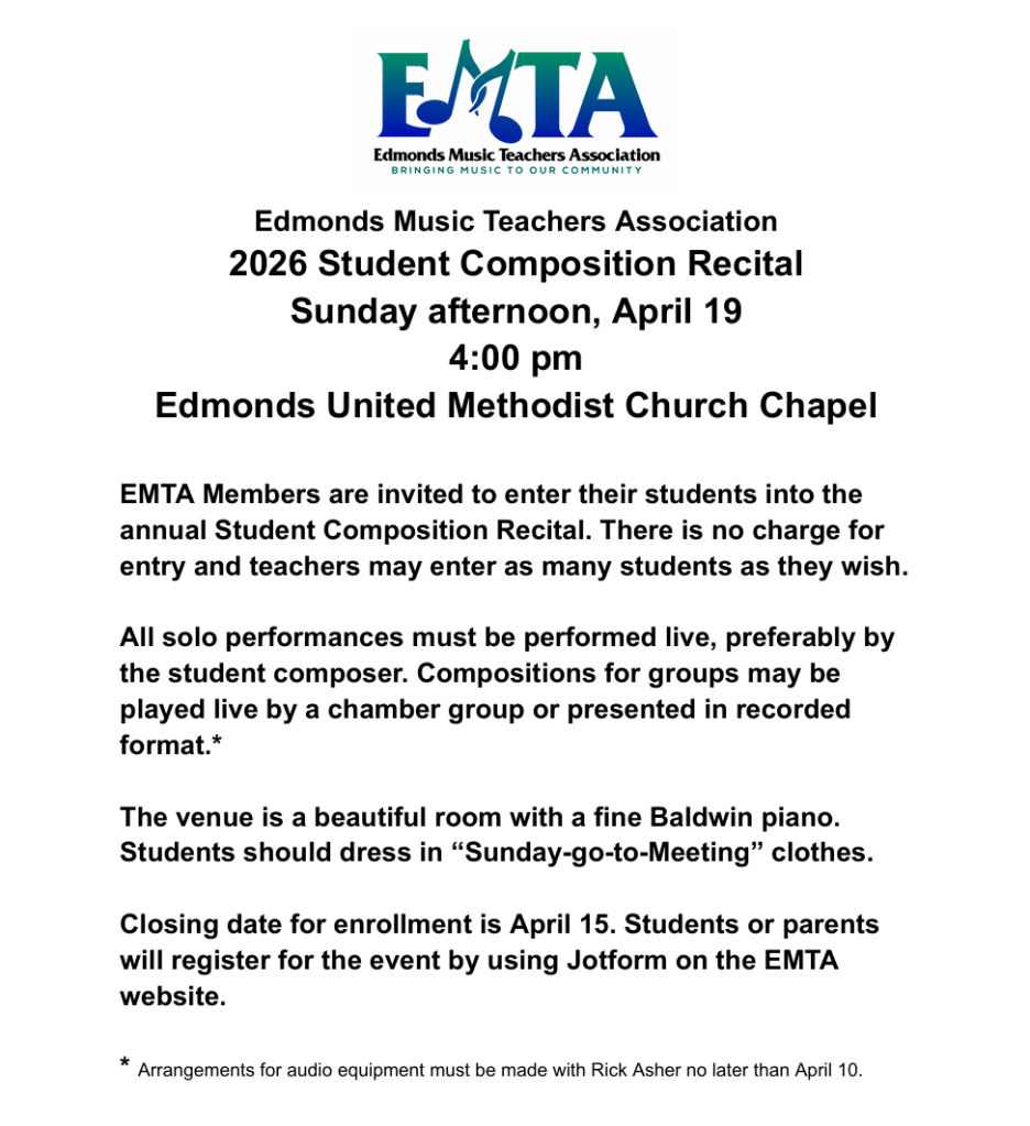 2026 Composition Recital Information Posted on March 6, 2026 by renos7 Posted in Uncategorized Share this: Share on Facebook (Opens in new window) Facebook Share on X (Opens in new window) X Share on Pinterest (Opens in new window) Pinterest Print (Opens in new window) Print Like Loading...